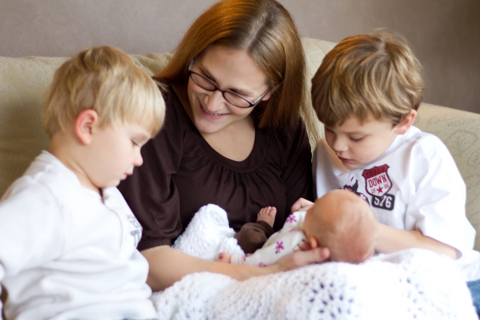 I have a guy that I work with whose wife is new to photography. She offered us a free session at our house to be done shortly after Kamryn was born. She wanted to a more natural type setting in a home with everyone. How do you pass that up? And I am so happy with how the pictures turned out! The boys weren't real cooperative as they both wanted to sit by Kamryn and couldn't so they got mad and we didn't get as many with all of us as we wanted. But they are still incredible. Here is a preview of a few of them.